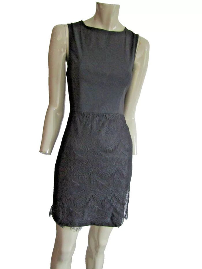 robe chic bi matière haut tissu extensible bas dentelle doublée marque fruscio pas de taille indiquée mais convient a une taille 34/36 mais bien confirmer avec les mesures prises en cms et a plat aisselles 40 (très extensible mesures prises sans tirer se ferme par un zip au dos) taille 33 longueur 89 envoi rapide = 1 jour maxi après l'achat achats multiples = frais de port réduits