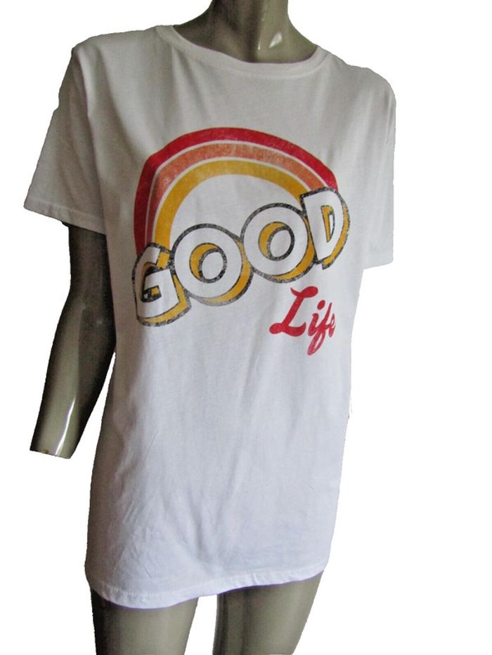 top t-shirt en 100%coton marque adilynn taille indiquée unique convient a une taille 46/48 mais bien confirmer avec les mesures prises en cms et a plat aisselles 56 longueur 70 envoi rapide 1 jour maxi après l'achat achats groupés = frais de port groupés