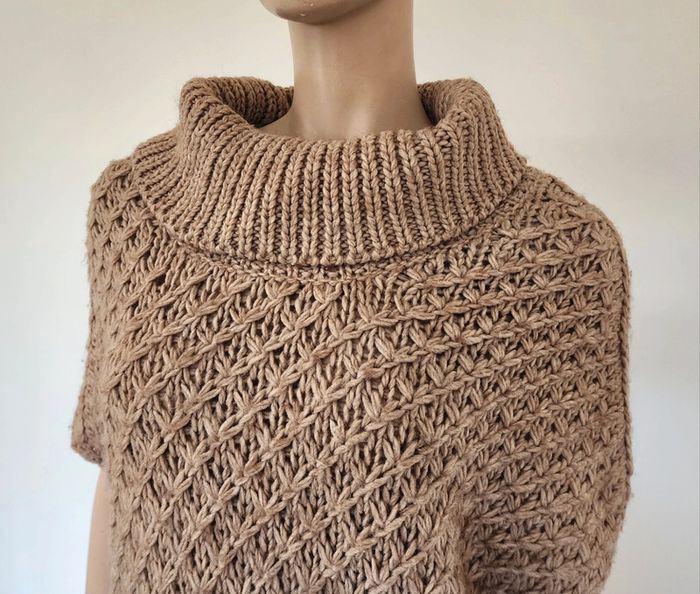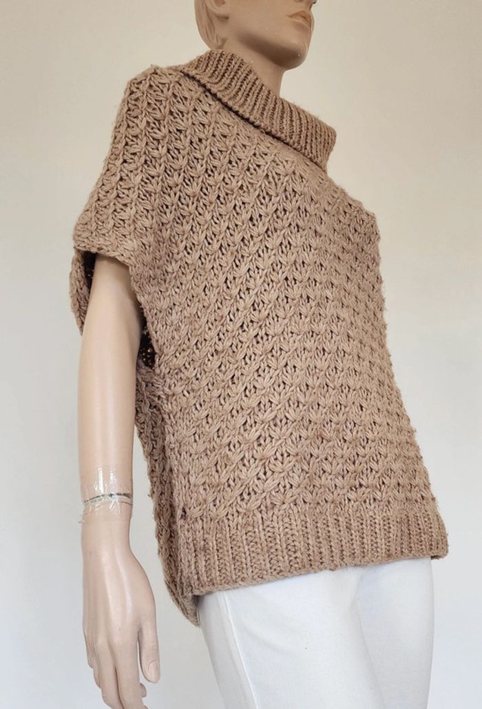 Un pull en maille beige à col roulé de 61cm de long Aisselles à aisselles 55cm Manches courtes Promod Taille 38