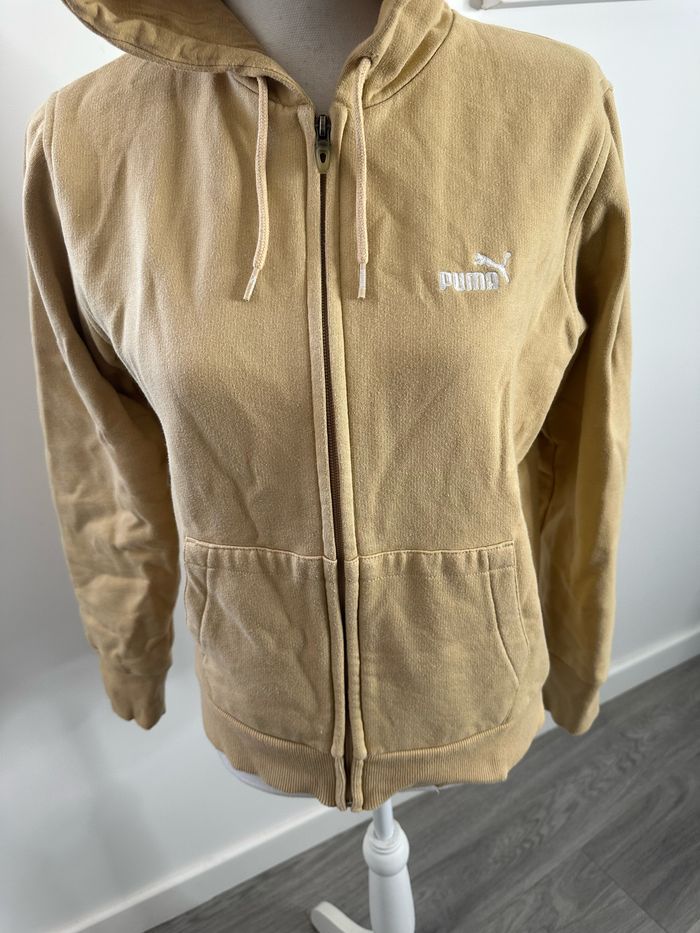 Sweatshirt - Excellent état - Taille 42 équivalent XL - Marque Puma - Couleur beige sable moutarde, identique aux photos - Intérieur polaire - Avec une capuche - Se ferme avec un zip - Coton et polyester Dimensions: - 50cm niveau aisselles - 59cm de long