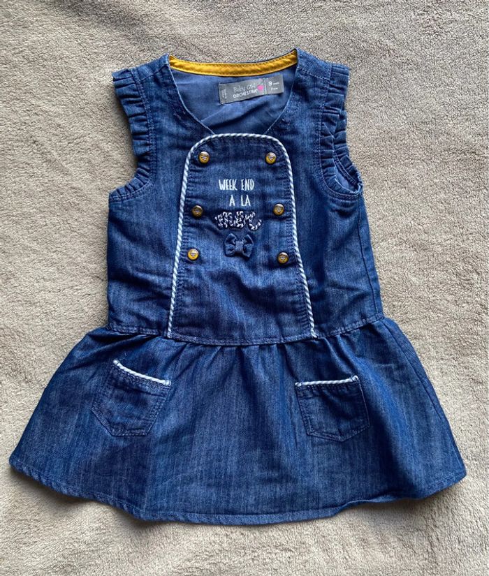 Vends robe en jean orchestra, taille 9 mois, en très bon état