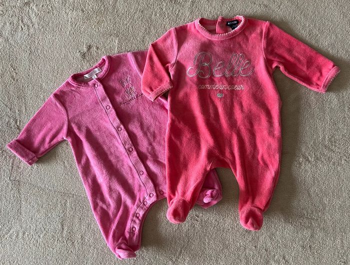 Vends lot de 2 grenouillères kiabi et kitchoun, taille 1mois, en très bon état