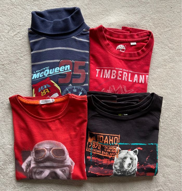 Vends lot de 4 tee-shirts en bon voir très bon état + 1 offert en bon état malgré quelques accrocs (voir photo)