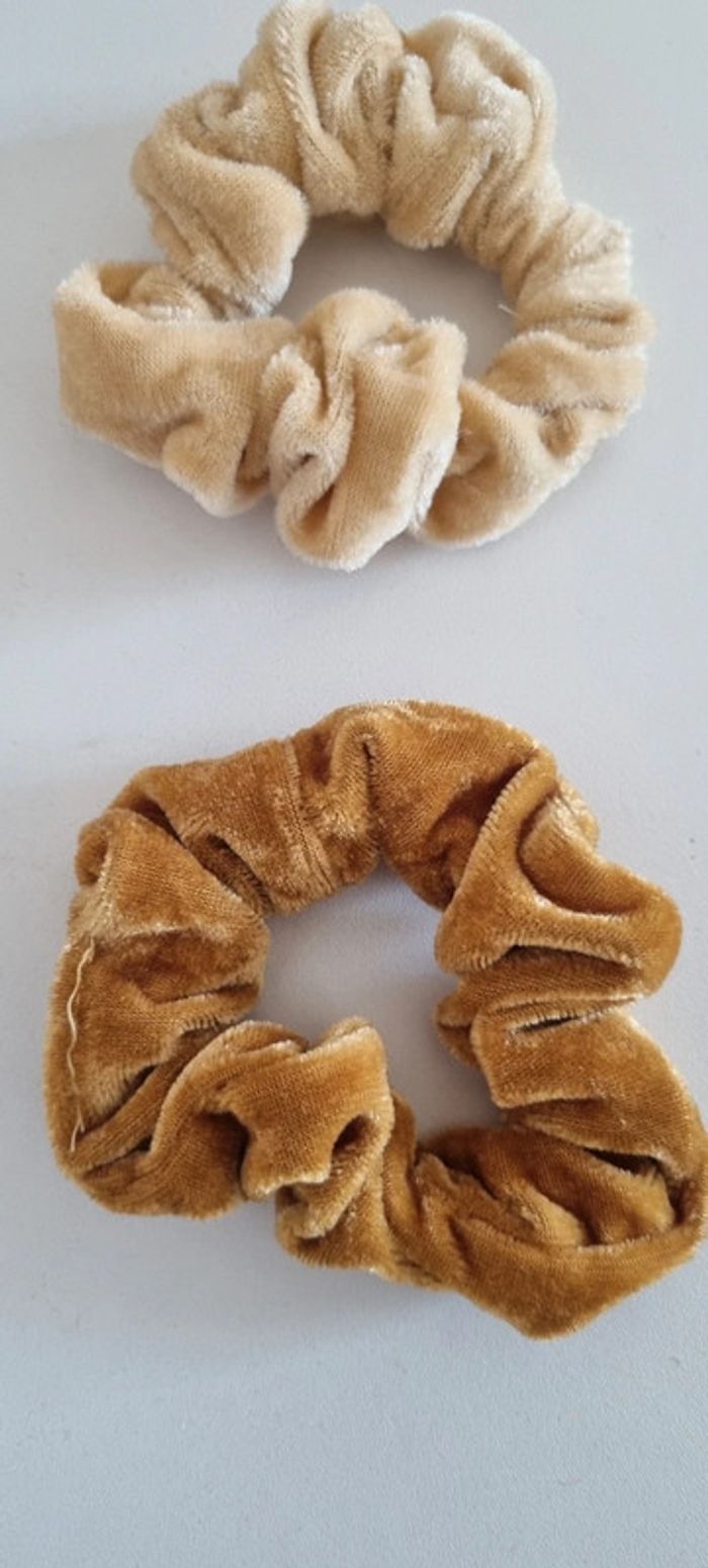 Lot de 2 Chouchou cheveux  velours ocre moutarde et beige neuf - photo numéro 1