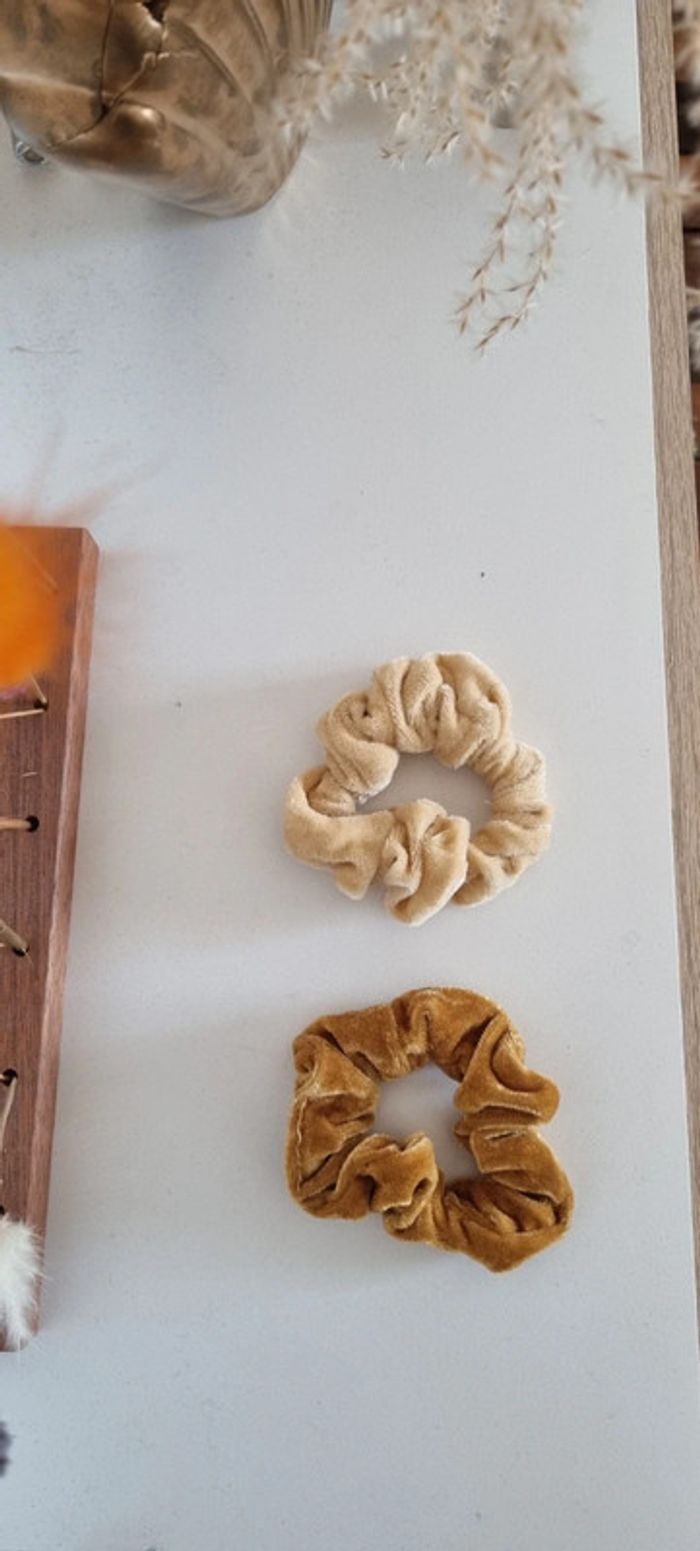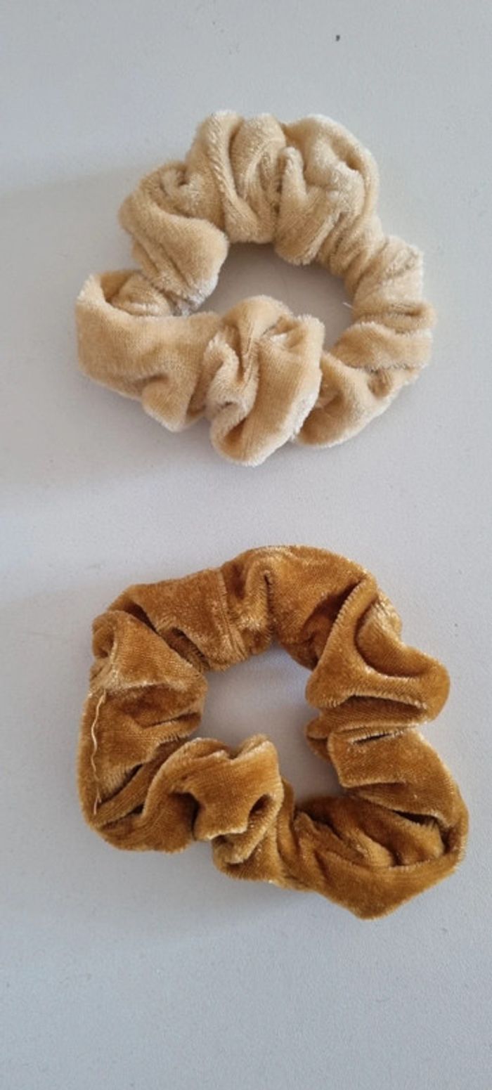 Lot de 2 Chouchou cheveux  velours ocre moutarde et beige neuf - photo numéro 2