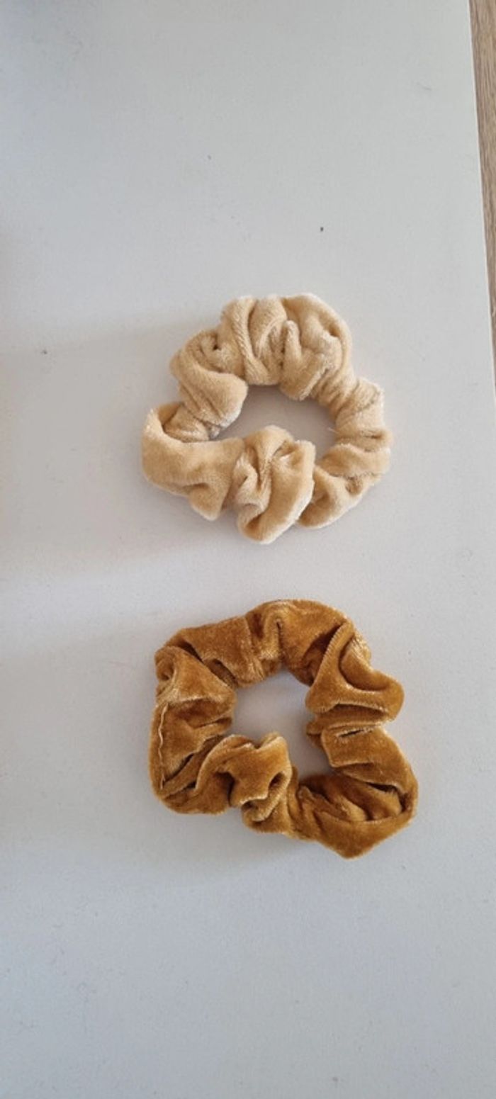 Lot de 2 Chouchou cheveux  velours ocre moutarde et beige neuf - photo numéro 4