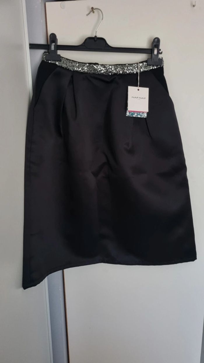 Jupe patineuse midi noire et sequins vert naf naf 36 neuve - photo numéro 1