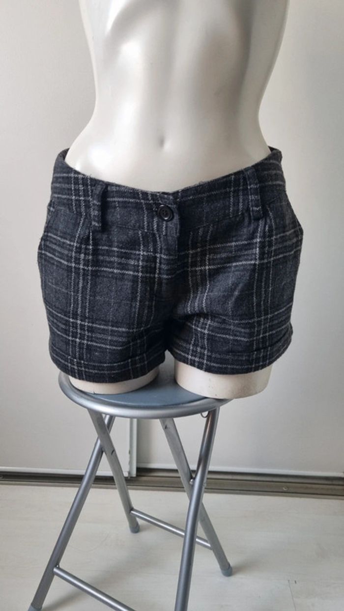 Short court gris carreaux en laine 36 hiver - photo numéro 2