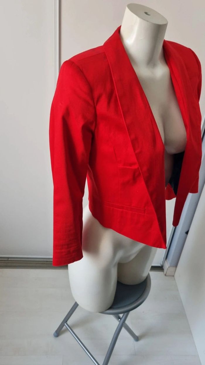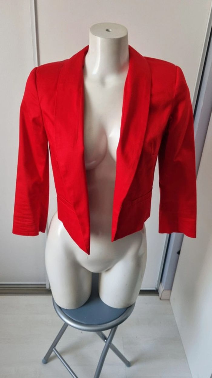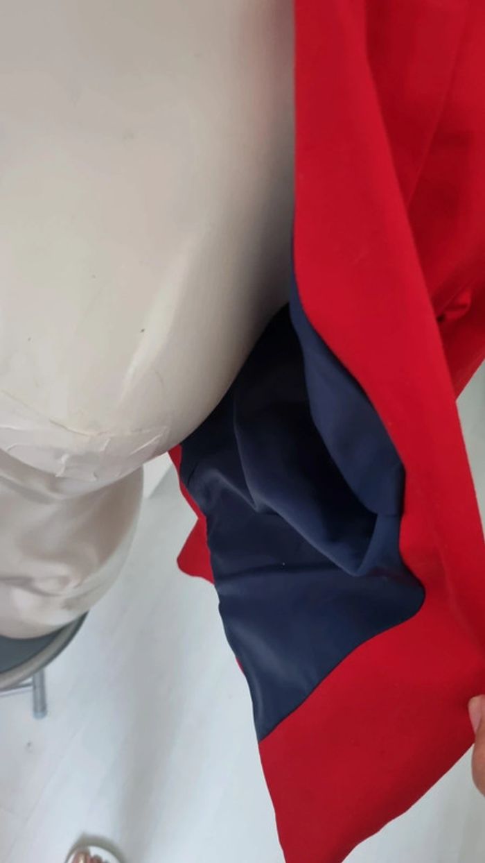 Doublée Épaulettes Petites tâches sur la manche et une épaule #vestecourte38 #vestecourterouge38 #vesterouge38 #blazerrouge38 #blazerrouge #blazercourt38