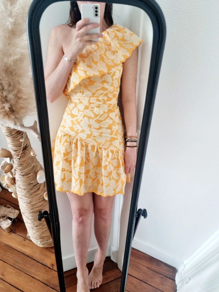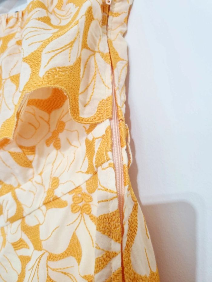 Robe courte asymétrique moutarde Floral brodée naf naf 38 - photo numéro 5