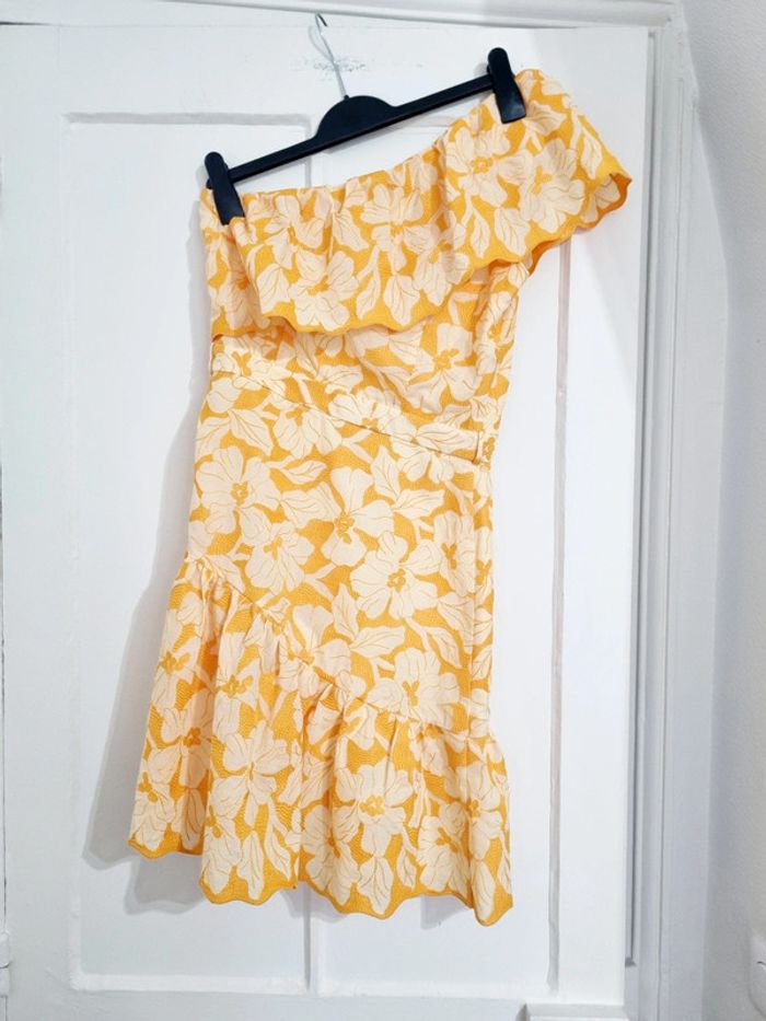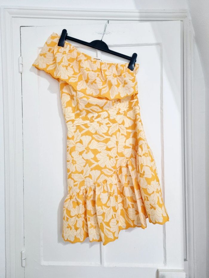 Robe courte asymétrique moutarde Floral brodée naf naf 38 - photo numéro 2