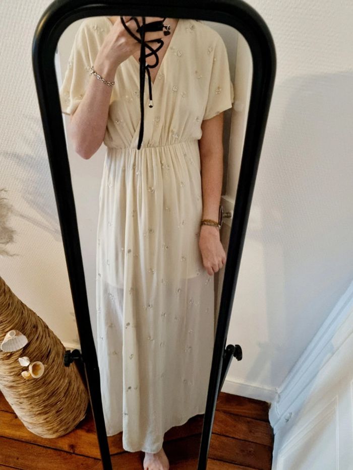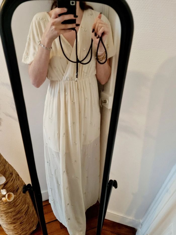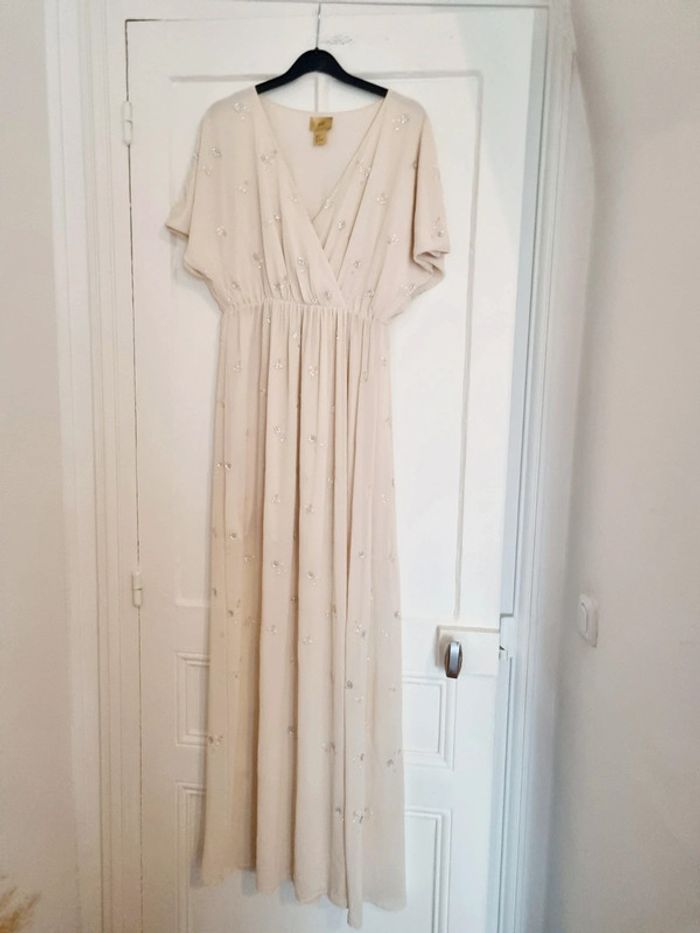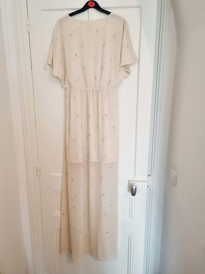 Robe longue cérémonie beige avec perle 36 h&m - photo numéro 3