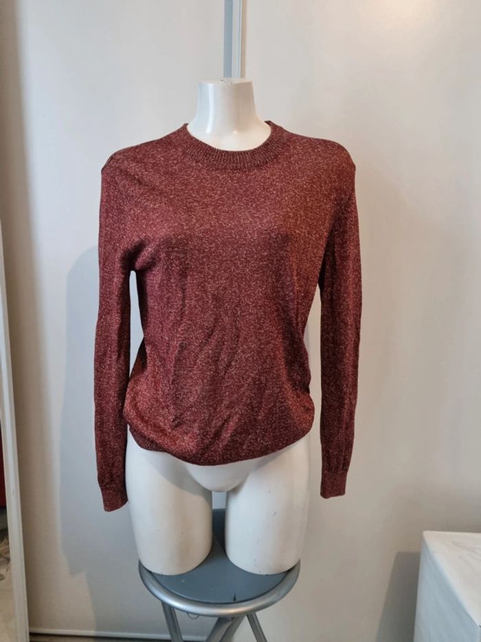 Pull fin rouge bordeaux Paillette doré 36 h&m - photo numéro 1