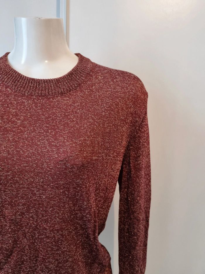 Pull fin rouge bordeaux Paillette doré 36 h&m