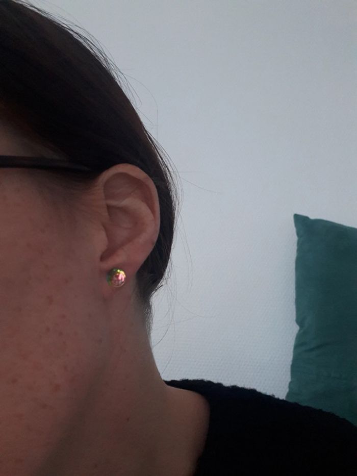 Un paire transparente qui prends la lumière #bouclesdoreilles #boule #noir #noire #bouclesdoreillesboules #bouclesdoreillenoire