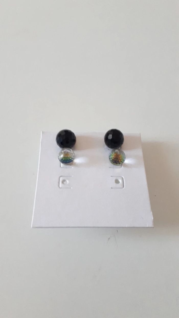 Lot de 2 boucles d'oreilles transparente et noire - photo numéro 3