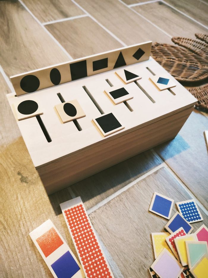 🌈Jeu éducatif en bois-Coffret boîte de tri nuancier Montessori JB1385 🎀Convient dès l'âge de 3 ans 🎀Votre enfant devra reconnaître et choisir les couleurs selon la grande planche et insérer les petites plaquettes dans les fentes du coffret. 🎀Ce coffret tout en bois contient ✨9 planches recto verso avec nuancier ou motifs ✨Petites plaquettes correspondant aux couleurs ou dessins des planches 🎀 Un jeu Montessori qui propose à votre enfant de découvrir et d'apprendre ✨Les différentes couleurs et nuances ✨Les différentes formes ✨Développer son sens de l'observation et de perception ✨Développer sa motricité fine ❇️N'hésitez pas à créer un lot pour économiser sur les frais de port❇️ Premier âge, Jouet bébé, Jouet d'activité, Jouet ludique, Jouet eveil, Mémorisation, Memoire, aptitude, motricité, jeu Adresse, Montessori, jeu bois, Jouet bois, Jouet vintage, Jeu adresse, jeu apprentissage, dextérité, jeu sensorielle, jeu educatif, activités et Jouet pour bébé, trier empiler, encastrer, jeux et jouets