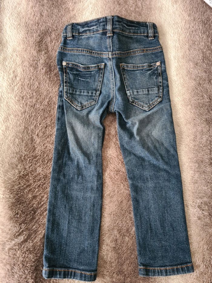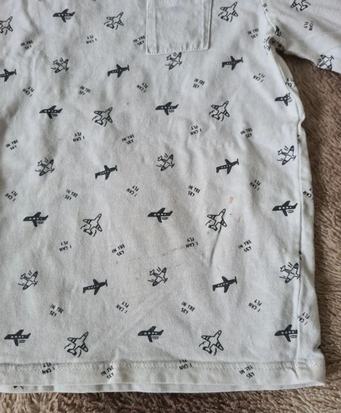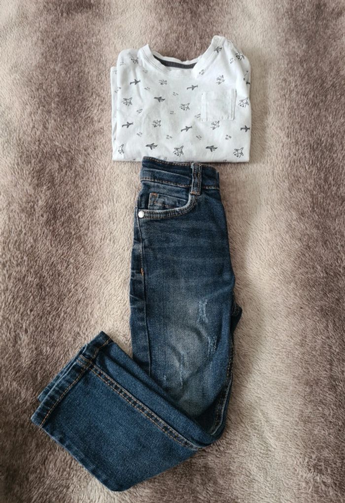 Ensemble jean + tshirt en taille 3 ans Jean Kiabi + T-shirt blanc motif avion Kiabi, petite tâche en bas du tshirt #Teve_Nais_3ans_garcon
