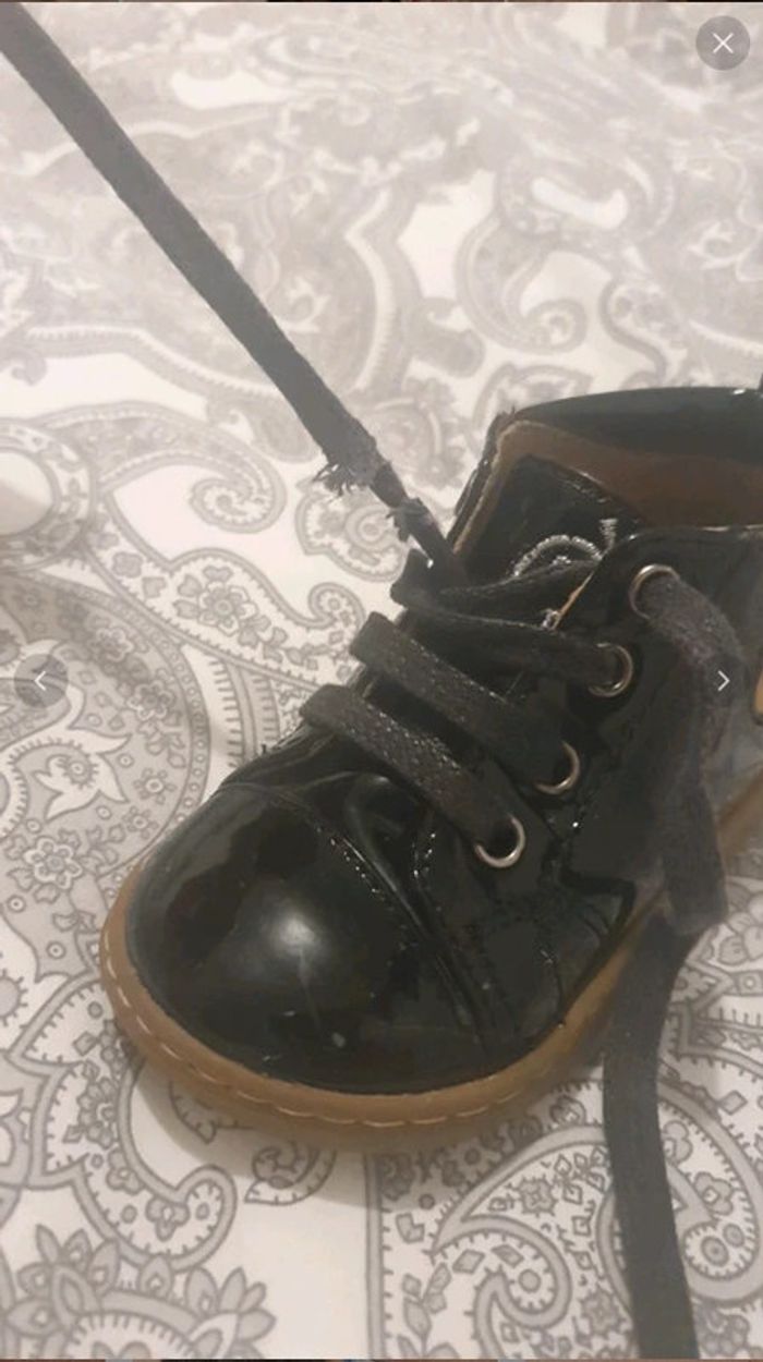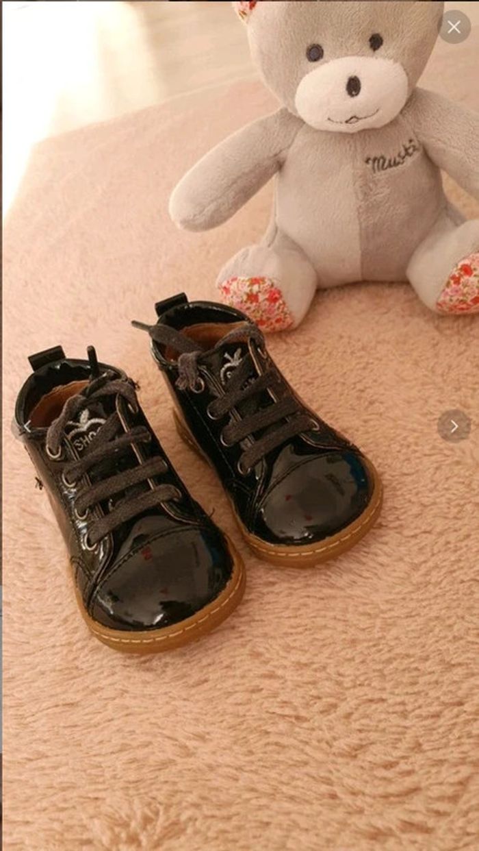 Chaussures vernis noire shoopom Taille 19 Bon état ( vernis légèrement abîmé sur l'avant du pied gauche + lacet très abîmé)