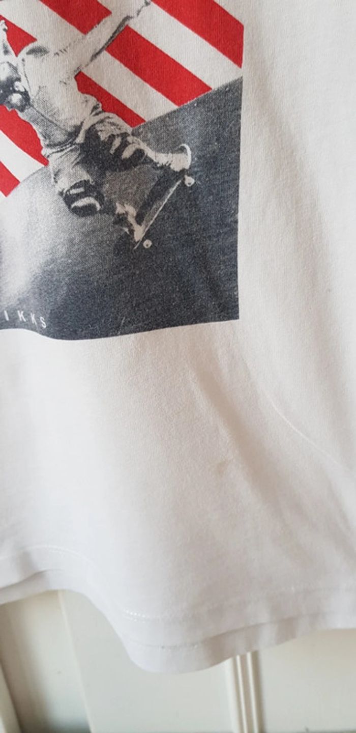 Tee-shirt manches courtes de marque IKKS. Taille 5 ans. Discrètes tâches à peine visible, voir les 2 dernières photos. Petit prix en conséquence