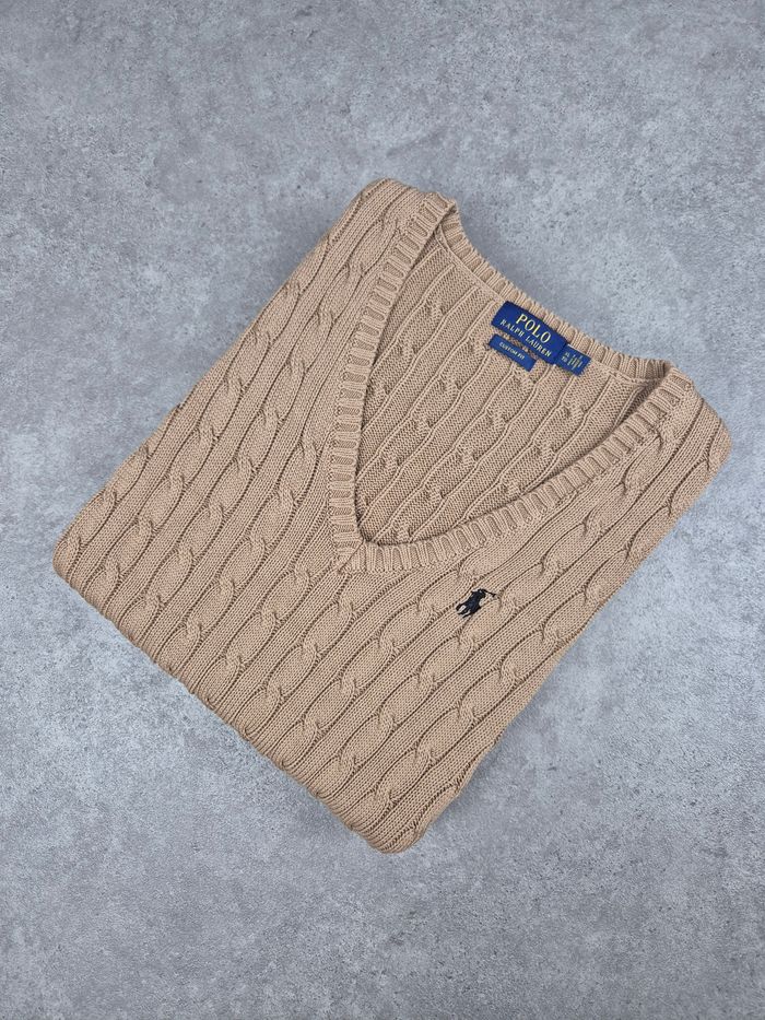 Pull Ralph Lauren torsadé tressé col V taille M - photo numéro 1