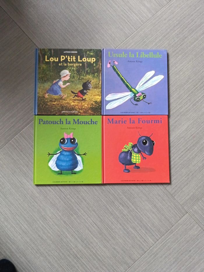 Lot 4 livres d'Antoon Krings : * Lou P'tit Loup et la bergère * Ursule la libellule * Marie la Fourmi * Patouch la Mouche Excellent état #livre #animaux #antoonkrings