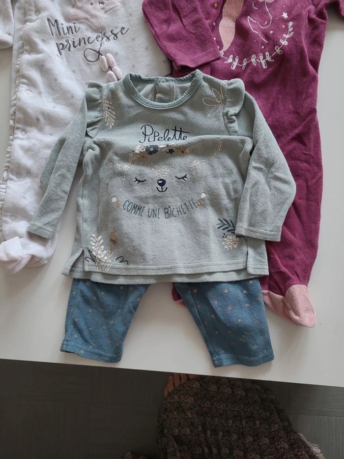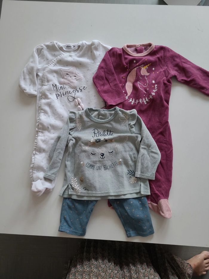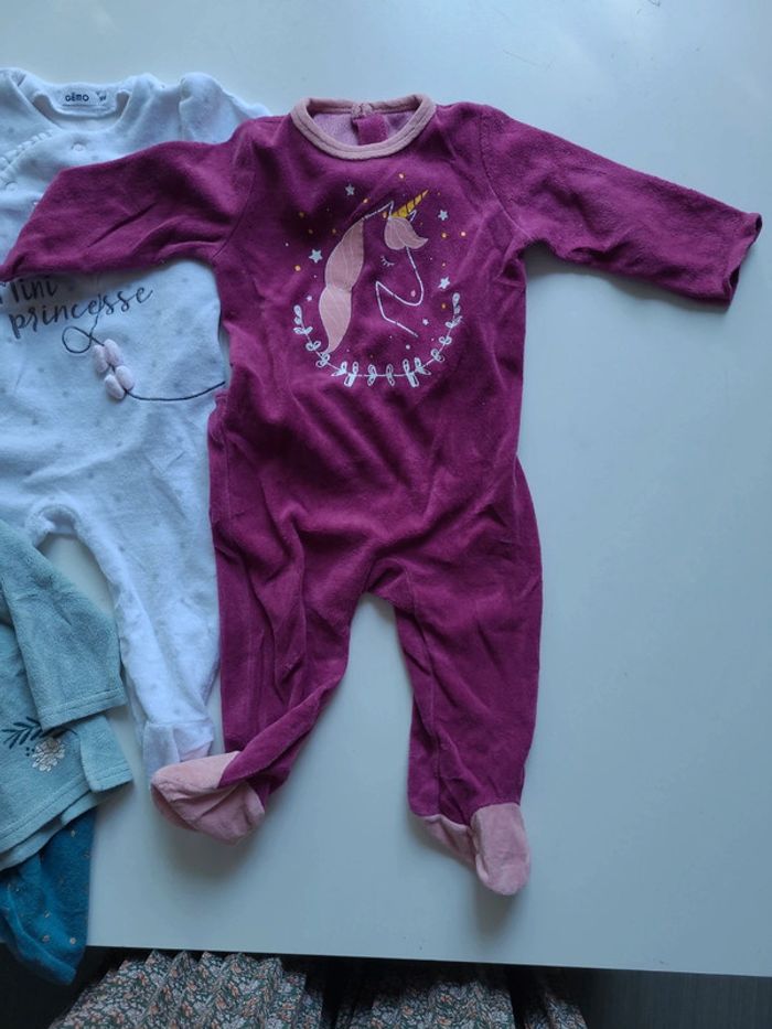 Lot 3 pyjamas 9 mois Gémo Petit Beguin Blanc, violet et le 2 pièces bleu et vert d'eau Excellent état #pyjama #grenouillère #9mois #fille