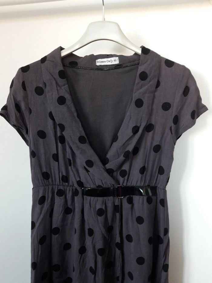 Robe courte taille 40 grise à pois noirs marque Women Only #robe #femme #womenonly