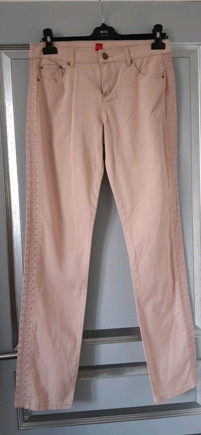 Jeans rose avec broderie Miss Captain t38 Valeur 72€ Vendu 20€ #captaintortue