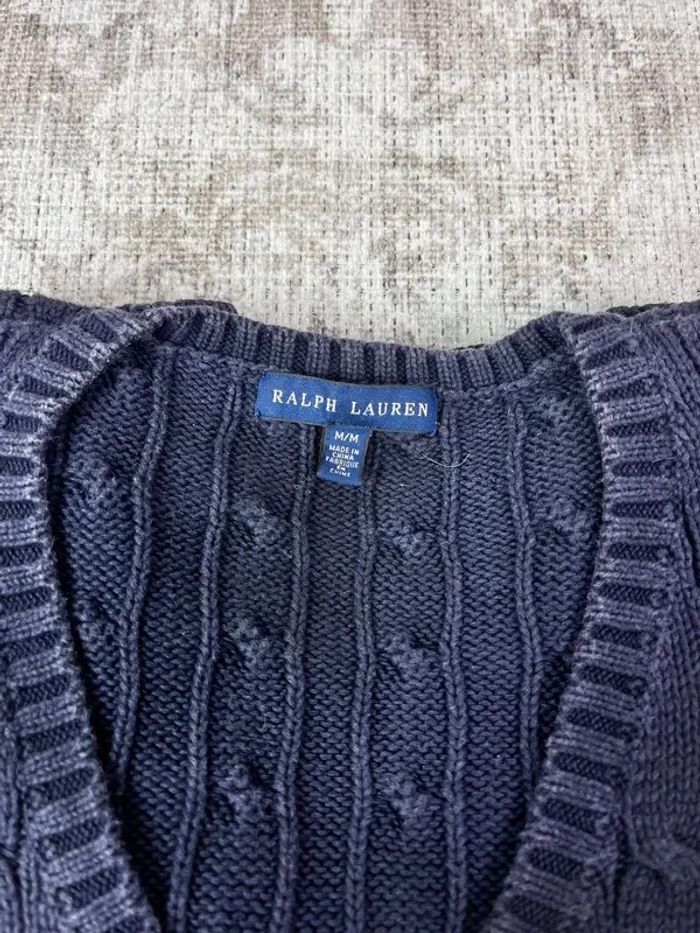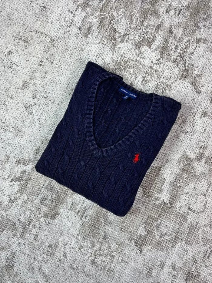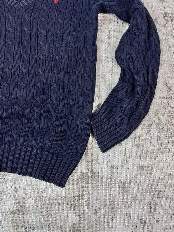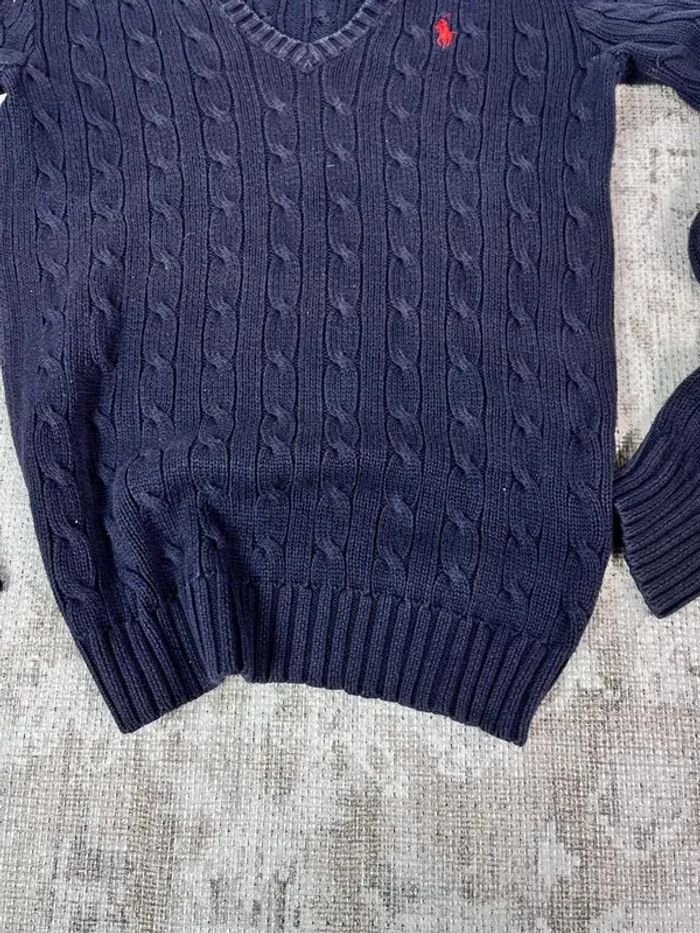 Pull col en V ralph lauren bleu marine logo brodé rose taille XL 489C - photo numéro 9