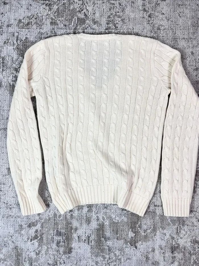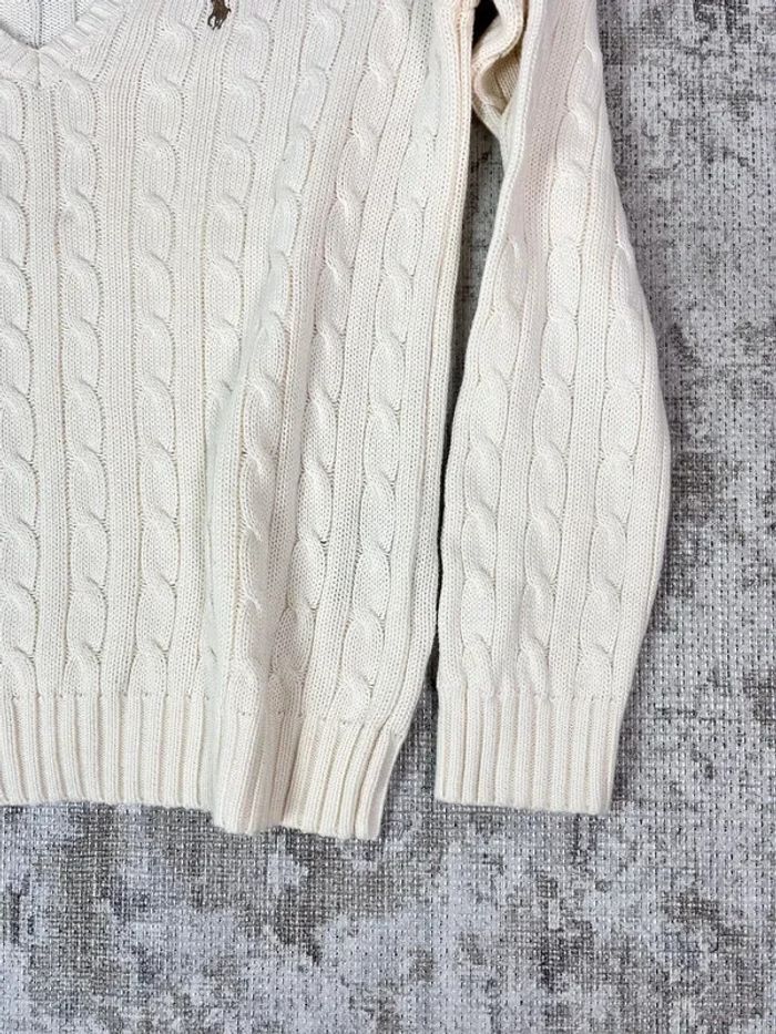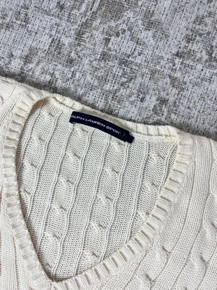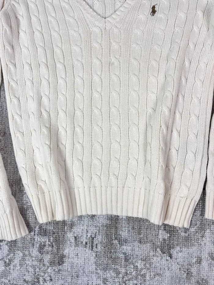 Pull col en V ralph lauren beige logo brodé marron taille L 466D - photo numéro 9