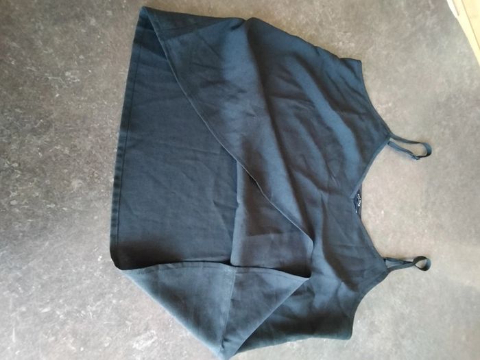 Débardeur noir 40 bretelles réglables En très bon état. Il n'a plus son étiquette composition. Dimensions taille 45 cm Aisselles à aisselles 44.5 Longueur totale 43 cm 100% polyester En très bon état