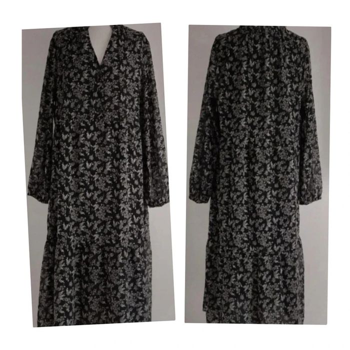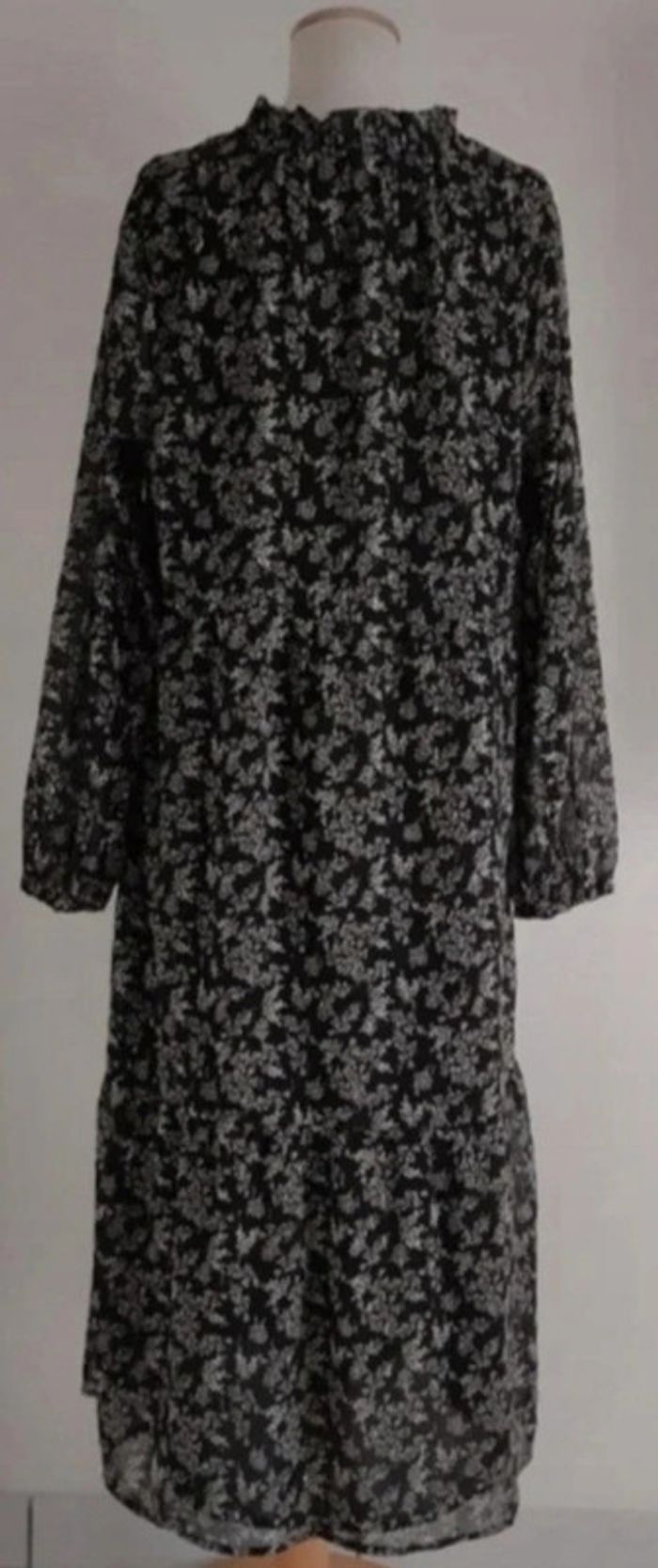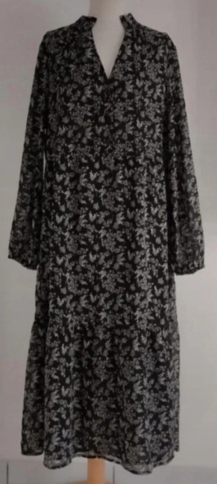 Robe longue col en V manches longues noire avec fils argentés Kiabi taille 46