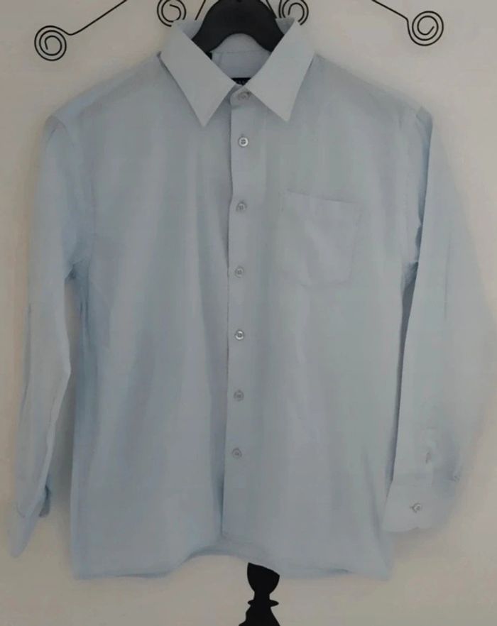 Chemise bleu clair fines rayures blanches Cérémonie taille 12 ans - photo numéro 1