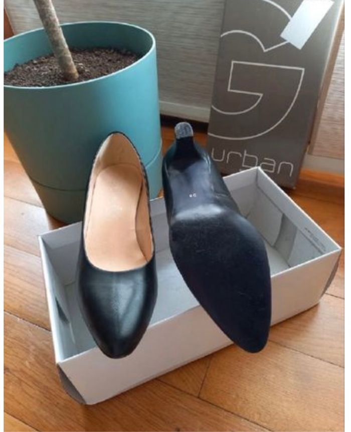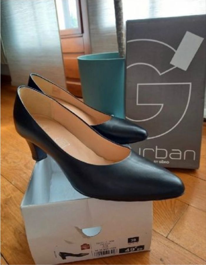 Vends une paire d'escarpins à petits talons de chez Gémo, noires, pointure 39, portée une seule fois.
