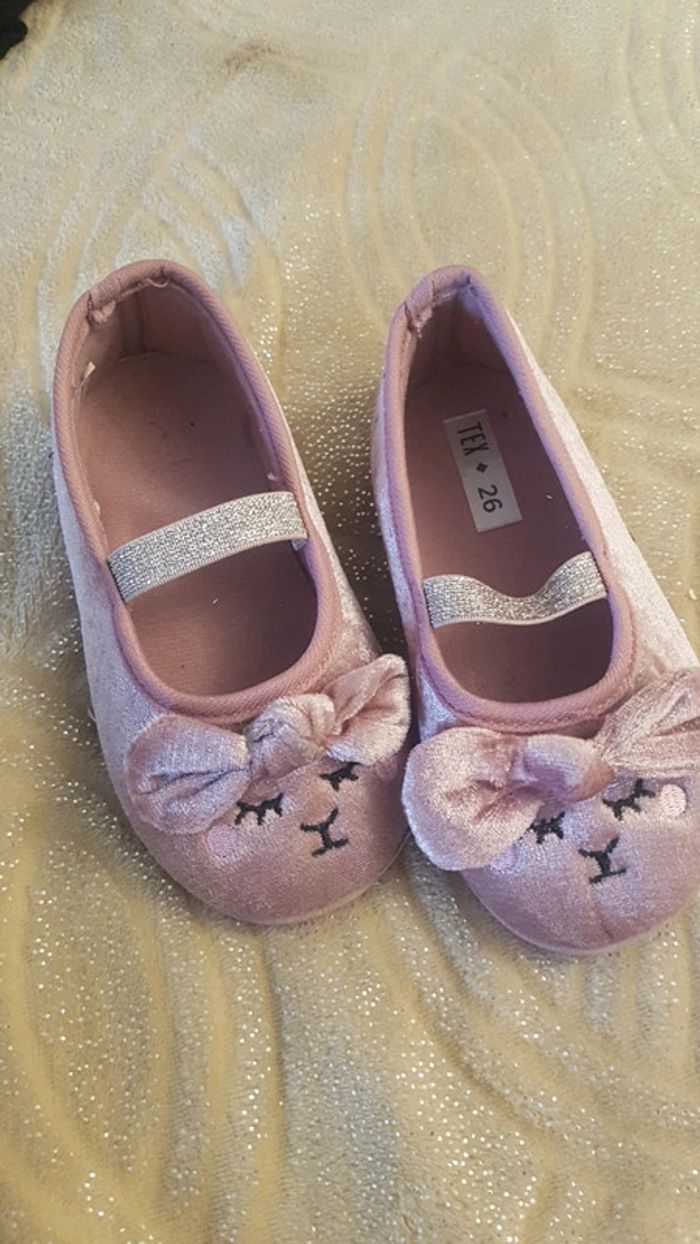 chaussons ballerine fermé fille rose tout doux avec elastique - photo numéro 1