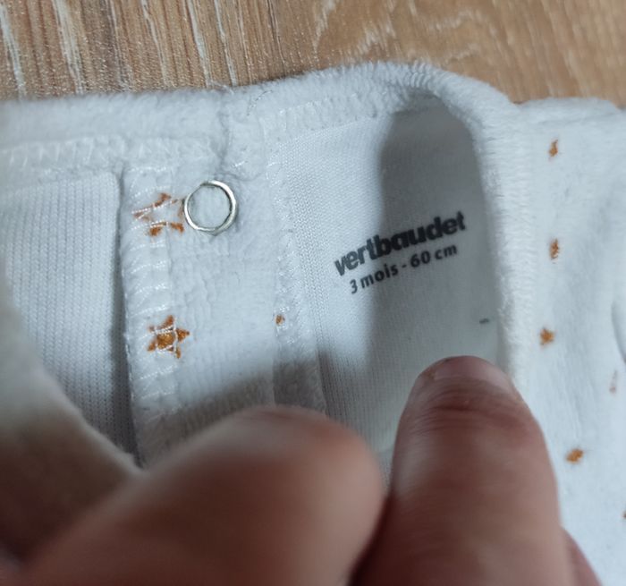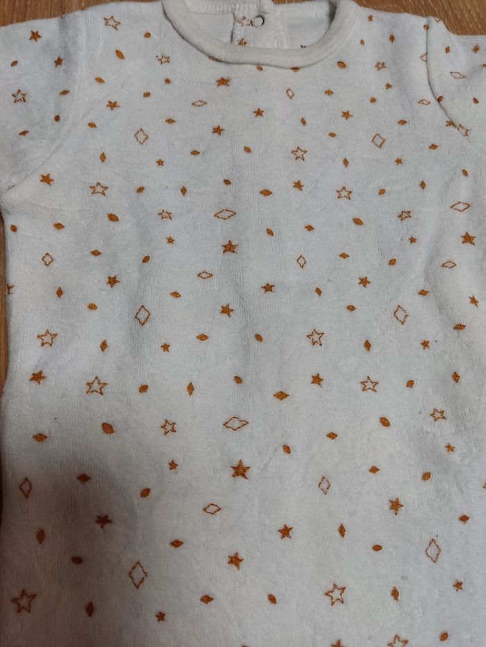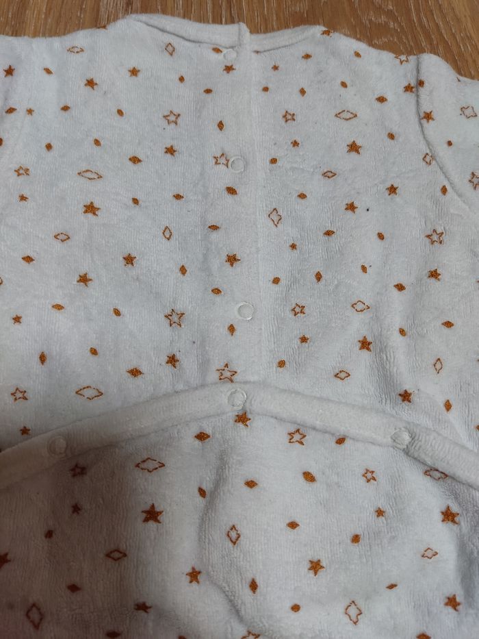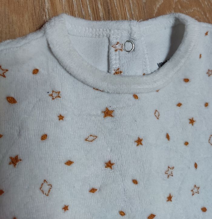 Pyjama velours en très bon état. Juste le col qui a un peu jauni. Marque Vertbaudet. Taille 3 mois.