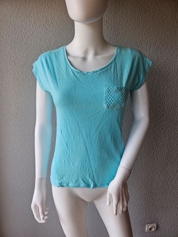 Tee shirt avec dentelle bleue - photo numéro 1