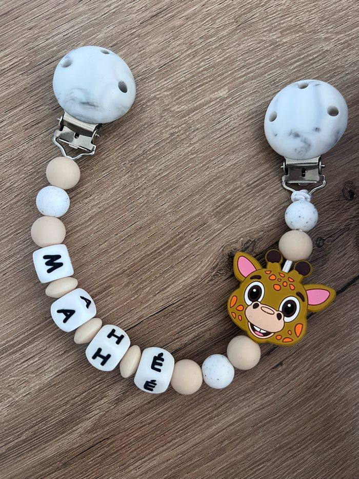 Attache doudou personnalisé en silicone ou en bois au souhait de l’acheteur . Personnalisable au choix de l’acheteur que ce soit la couleur comme le prénom ou le thème . Le fil est doublé pour plus de sécurité tout le long de l’attache tétine. N’hésitez pas à me demander et regarder mon dressing. Une photo vous sera envoyée avant l’expédition pour vous ayez un aperçu du rendu. Tous les produits sont réalisés avec du materiel spécial conçu aux bébés , enfants.