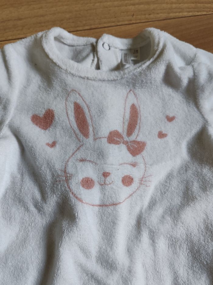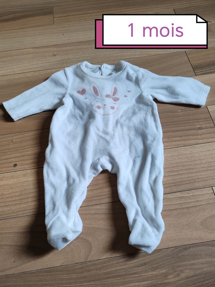 Très joli pyjama/grenouillère Blanc avec motif lapin 🐰 rose Taille 1 mois (54 cm) Très bon état Marque Orchestra 75% coton, 25% polyester Tous mes vêtements sont envoyés lavés (avec de la lessive écologique) et repassés. N'hésitez pas à faire un tour dans mon dressing pour constituer un lot et bénéficier de réductions.