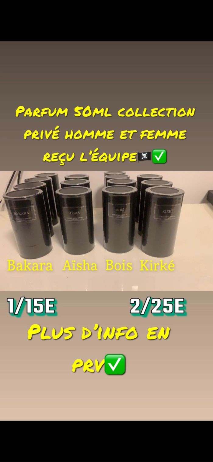 Je suis vendeur de parfum de collection priver c’est de la qualité il y’a des pour homme et femme a vous de choisir et vous faire plaisir😁✅