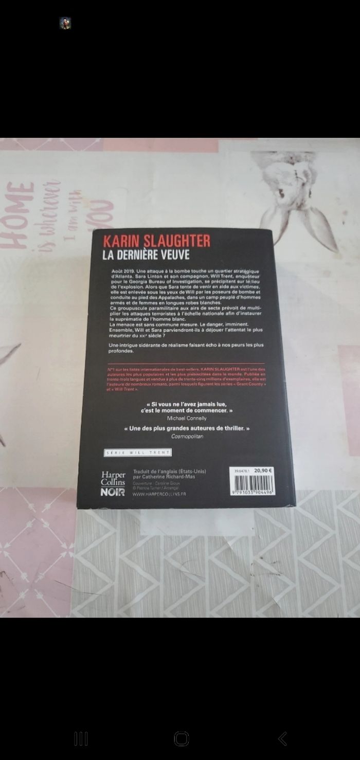 Livre la dernière veuve en très bonne état sauf qu'elle que imperfections via photo rien de grave 586 pages.