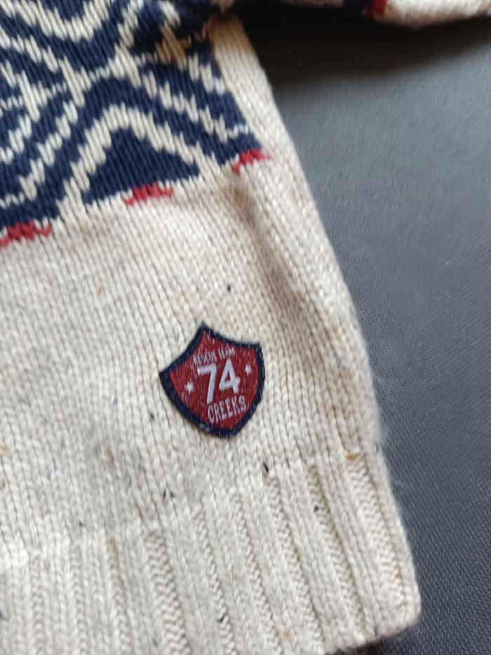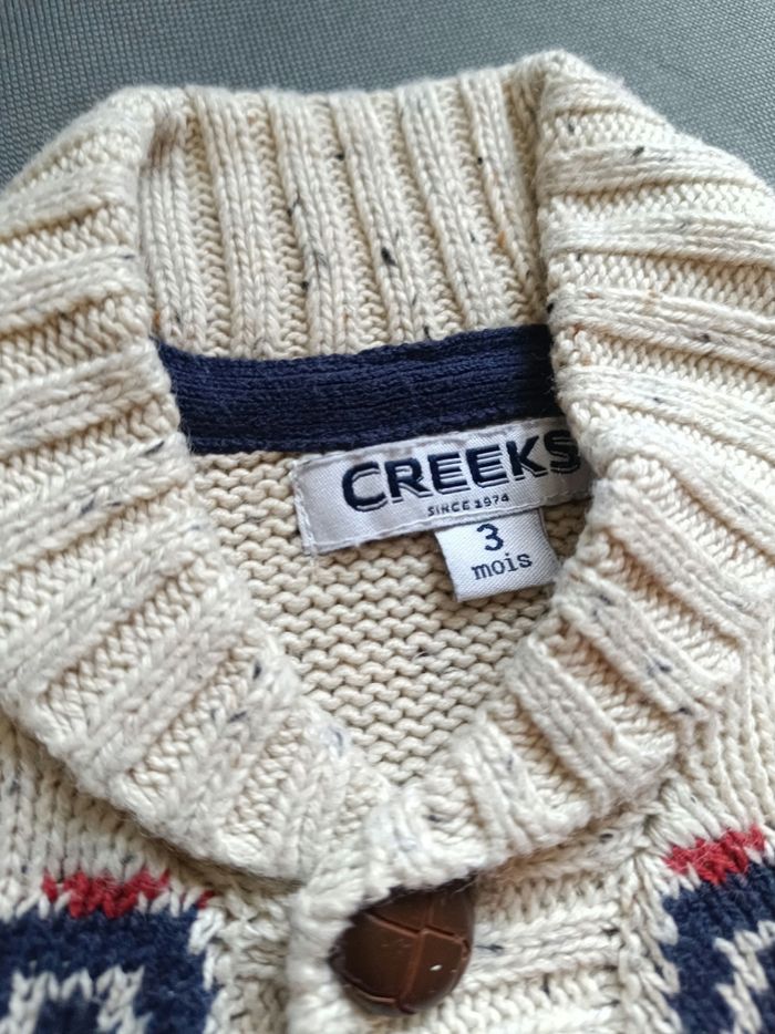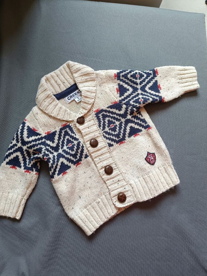 Gilet beige et marine épais. Très bon état. Taille 3 mois 🦕 Réduction sur les lots dès 2 articles achetés
