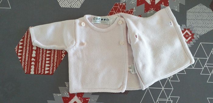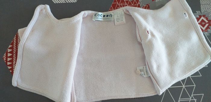 Gilet fermeture par 4 boutons. Taille 1 mois de couleur rose