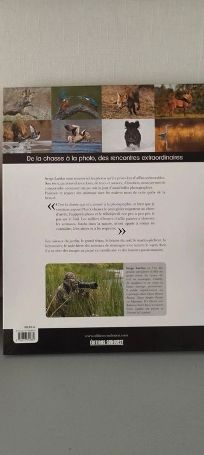 Chasses photographiques de Serge Lardos. De la chasse à la photo, des rencontres extraordinaires Serge lardos nous montre ici les photos qu'il a prises lors d'affûts mémorables. Édition sud-ouest 2016 État neuf