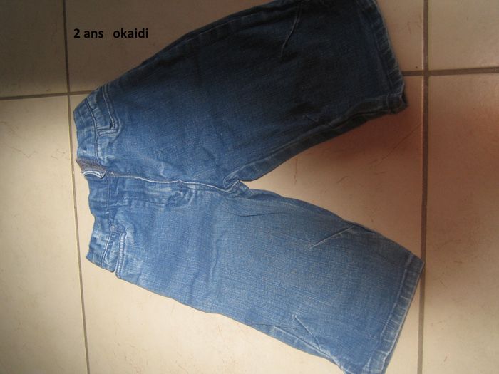 Lot qui comprend 31 habits robes short jean Okaïdi collant chaussettes imperméable pyjama 2 pièces et 1 pièces culotte tee short mc bonnet écharpe combishort