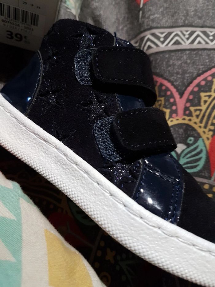 Neuves À scratch Bleues marine Étoiles brillantes Semelles blanches
