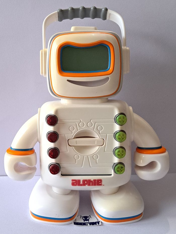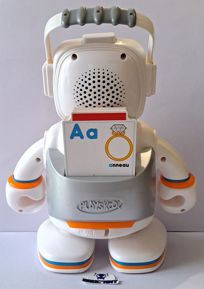 Robot électronique Alphie + 30 cartes / Playskool Hasbro 2009 / 27cm État : son et lumière fonctionnels, version française, ne lit pas les cartes, à réparer. Voir photos et description pour les détails. Envoi suivi, rapide et soigné (vente directe possible à Berck). Plusieurs articles vous intéressent ? Créez un lot pour rentabiliser les frais d'envoi. Besoin d'autre(s) renseignement(s) ? Contactez moi. Broc'Ant / Jouets – Jeux Vidéo – Brocante – Collection #brocant #brocantjouets #brocante #vintage #retro #ancien #collection #jouet #toy #figurine #figure #robot #alphie #playskool #hasbro