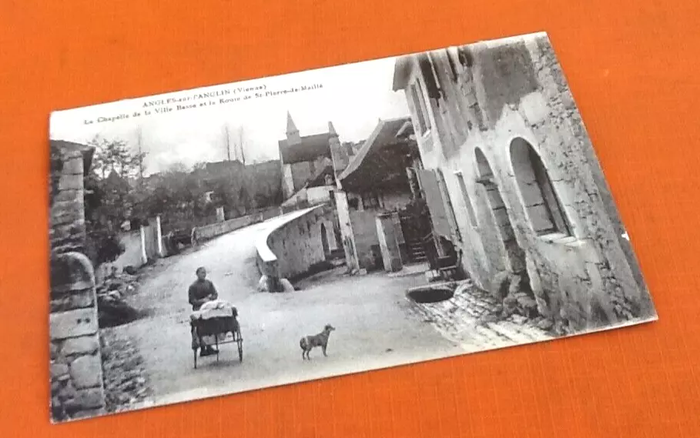 Carte postale ancienne Angles-sur-L' Anglin (Vienne) La Chapelle de la Ville Basse et la Route de St-Pierre-de-Maille