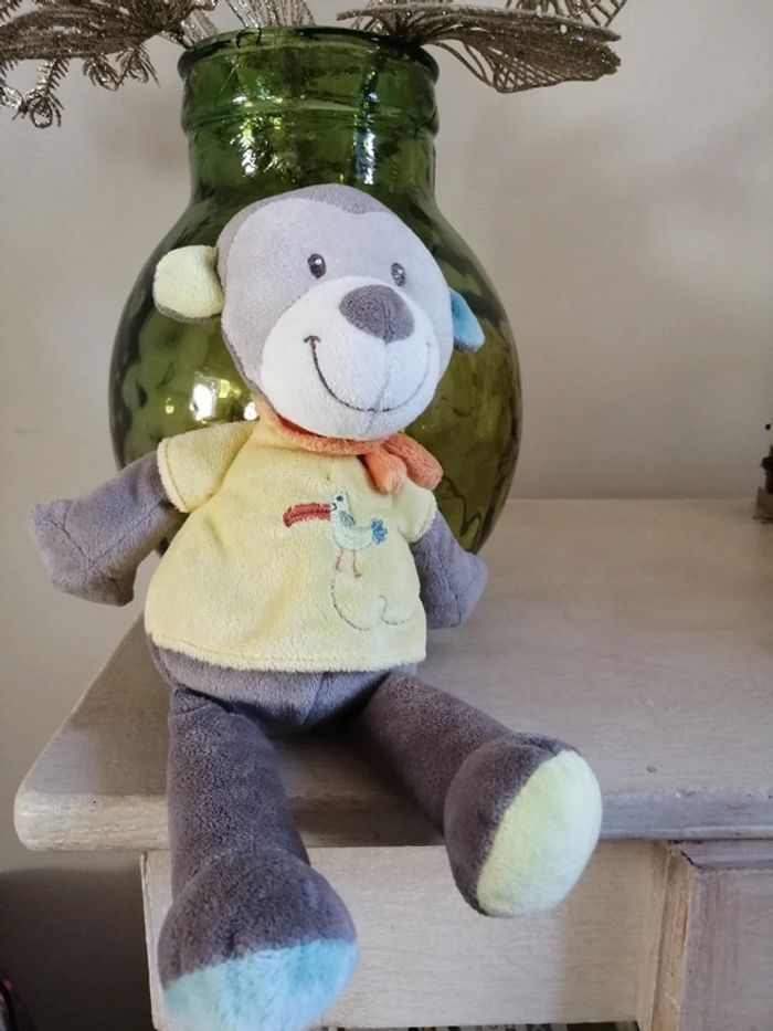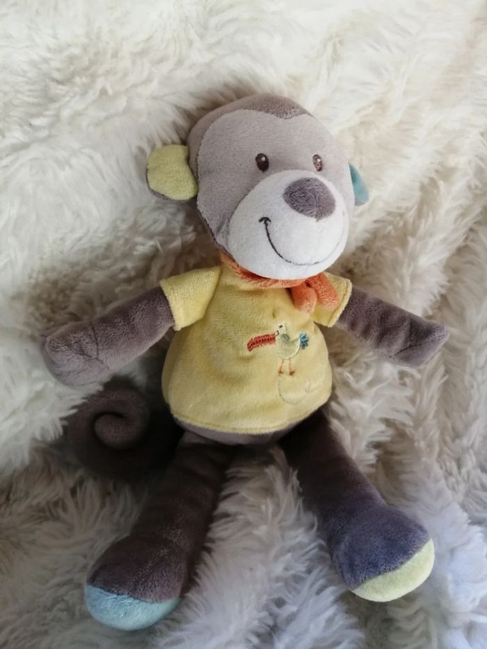 Doudou Singe gris jaune foulard Nicotoy Toucan - photo numéro 1